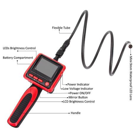 Vividia 9mm Portable Flexible Inspection Camera with Dual-Camera Head and 2.4" LCD Monitor