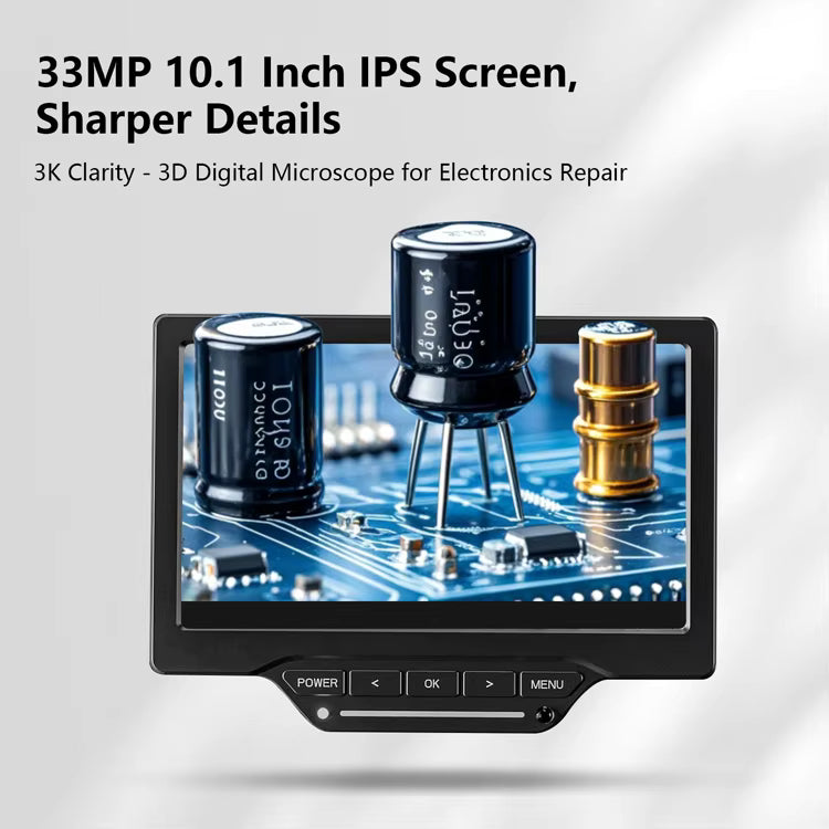 Vividia HM-4103D Digital Microscope with 10" 1080p LCD Screen, Manual Focus, 2D / 3D modes, 350x Magnification, 4MP Image Sensor, HDMI/USB Output