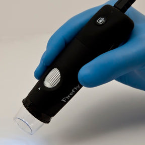 Captures microscopic pictures and videos