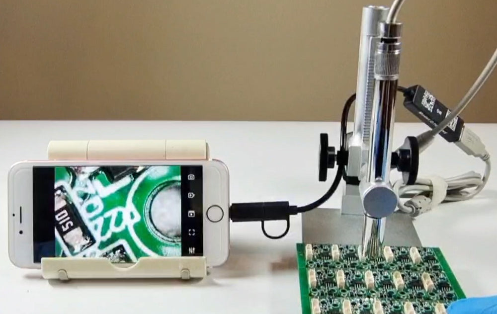 Connect digital microscope to your computer with USB cable included, and inspect small details right on your computer screen! With 2.0M pixels CMOS sensor, up to 400x magnification, and eight built-in LEDs for illumination, this product allows you to view images in high resolution, take standard photos and record videos. Also you can connect this microscope to an Android device (Android smart phone or tablet) with an OTG cable (not included in package), download and install free "CameraFi" APP from Play Store. It is easy to take snapshot by hardware button or by software control, and the images can be saved, compared and printed. The microscope comes with an adjustable aluminum alloy stand, and a set of accessories (reflector tube, multi-function tube, large focusing cap, ear tip) which can be attached to the endoscope for different inspection purposes. The microscope is multi-functional. It can be used for inspecting hard-to-reach places such as the inside of engines, machines, tubes, pipes, etc. It is also ideal for a variety of applications including textile inspection, detailed repair, printing inspection, computer parts inspection, nature observation, reading aid, collectables examination (coins, antiques), and health (skin and ear) examination.