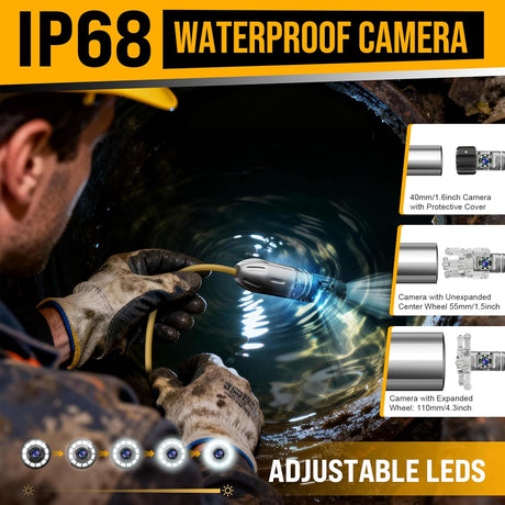 Vividia VS-12330RD Rotational Dual-Camera Pipe Inspection Camera 100ft Cable 7" Monitor