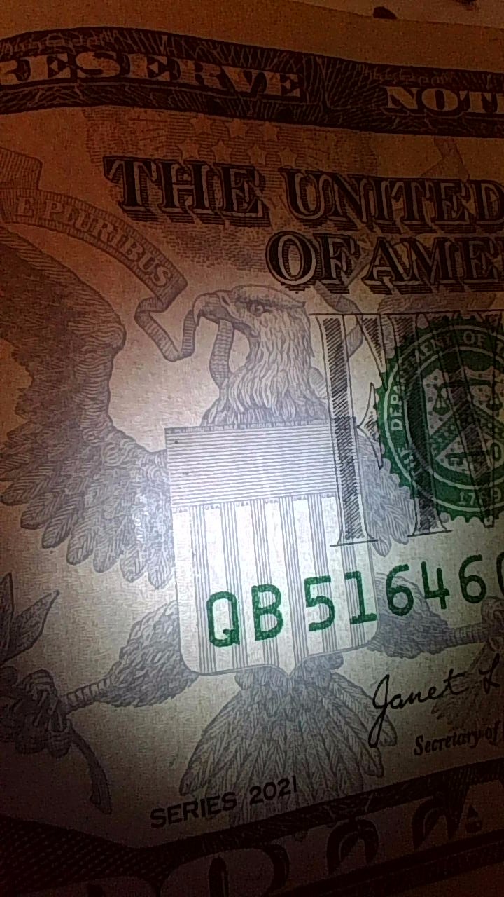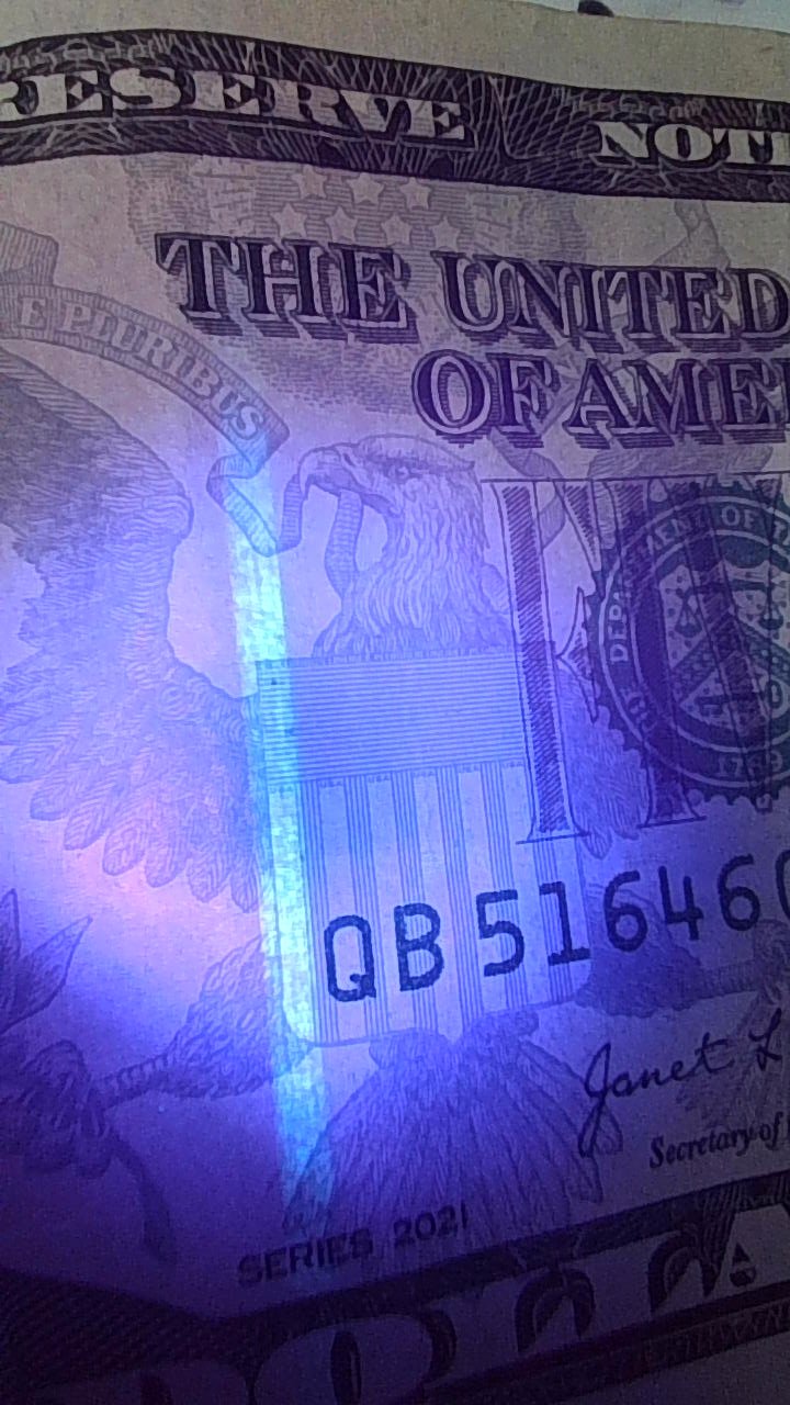 five-dollar bill under UV lighting