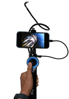 Vividia ME-910i Semi-Rigid Gooseneck Smartphone Joystick Articulating Inspection Camera Borescope has 8.5mm diameter and 0.74 meter / 2.4ft long flexible probe, which is covered with polymer tube for durability and waterproof IP67. Vividia ME-910i has bright LED lights, joystick pivoting 8.5mm (0.33") probe camera and it can be used to look into dark places as a diagnostical inspection camera. The camera head can be steered with the joystick to all directions and all angles. ME-910i can be directly connected to a iPhone iPad or Android phone or tablet through a USB data cable. With the free APPs, "USee", from Google Play Store or Apple App Store, one can preview, take pictures and videos With waterproof flexible insertion tube and probe camera, Vividia ME-910i borescope is suitable for many applications, such as looking into engine cylinders, inside airplane wings, behind instrumental panel, inside brake systems. Vividia ME-910i can be a great diagnostic inspection camera for auto mechanics and technicians.