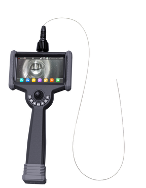 Vividia VP-2-1815 Flexible 2-Way Articulation Video Borescope is a 2-way articulation videoscope with 1.8mm / 0.071" diameter probe head and 1.5 meter / 4.9ft long probe insertion tube with a front-view camea. The camera resolution is 400x400 and the LCD monitor is 6" touchscreen with snapping and recording functions. The light is provided by a rear high power LED light through optical glassfiber. The photos and videos are saved on a SD card. The probe is waterproof and protected with metal braided mesh layers for wear and tear in harsh industrial environments.